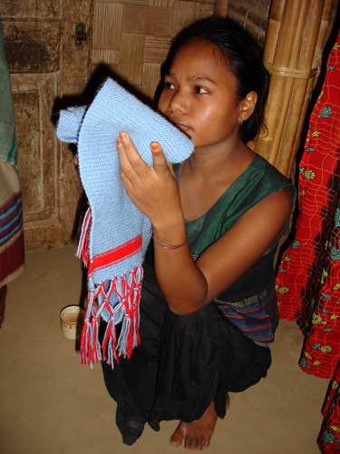 Das Dorf liegt in einer Talmulde und ist nur zu Fuß zu erreichen. Deepica kann also ihre armselige Hütte kaum verlassen. Der Verein hat eine Ausbildung bezahlt, damit sie in Heimarbeit etwas Geld verdienen kann. Im Jahr 2005 hat der Verein eine Aktion "Wolle" gestartet und schickt seither regelmäßig Pakete an Deepica. Ihre Art zu stricken und ihre Kreativität, wie auch die gute Qualität der deutschen Wolle, haben sie inzwischen zur gefragten Lieferantin gemacht.