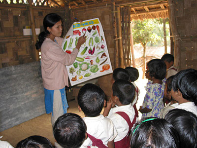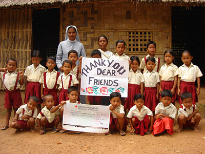 Inzwischen ist die Zahl der Kinder per Ende 2009 auf 130 angestiegen und das ursprüngliche Gebäude war zu klein geworden. An anderer Stelle des Dorfes hat der Verein ein neues Grundstück erworben und dort wieder mit Hilfe der Dorfbewohner ein neues Schulgebäude aus Bambus errichtet. Mit einem Zimmer mehr – und jetzt mit zwei Toiletten für die Kinder. Neben der Schule ist zudem noch ein kleiner Spielplatz, auf dem allerdings noch entsprechende Spielgeräte fehlen. Sie sind für das laufende Jahr 2010 geplant.